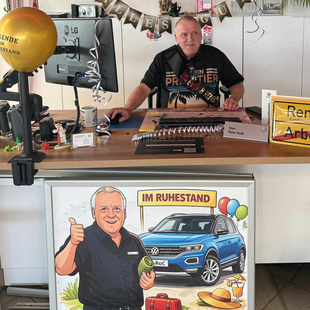 Nach unglaublichen 28 Jahren im Autohaus Am Regenstein heißt es Abschied nehmen: Unser geschätzter Serviceberater Peter Endt geht in den wohlverdienten Ruhestand.